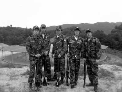 Here's a picture of Kim Tae (he's the middle dude) when he was in the military (like REAL Korean men do here).... gotta love a man in a uniform! Much respect to the Korean men.